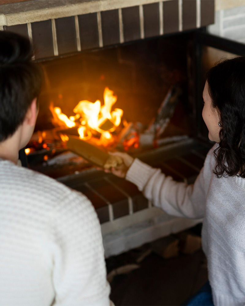 Experience the warmth of the fireplace.